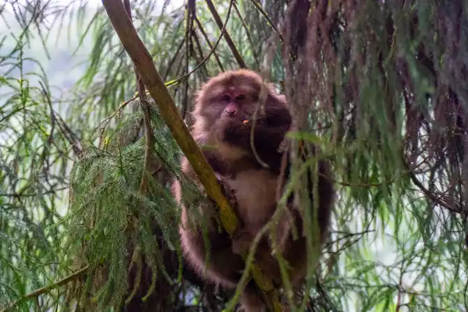 There are monkeys distributed throughout the mountain trail, find a great location, interact with the wild monkeys, and feel the harmony between man and nature.