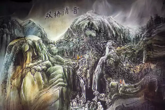Qingyin Pavilion is just a palace, and there are two stone bridges in front of the pavilion, "Shuangqiao Qingyin" and "Jiewang Pavilion", and under the bridge is clear flowing water; Although Qingyin Pavilion is small, it is dangerous, condescending, imposing, surrounded by mountains and rivers, beautiful scenery, and the overall layout reflects the artistic conception of natural creation and the unity of nature and man.