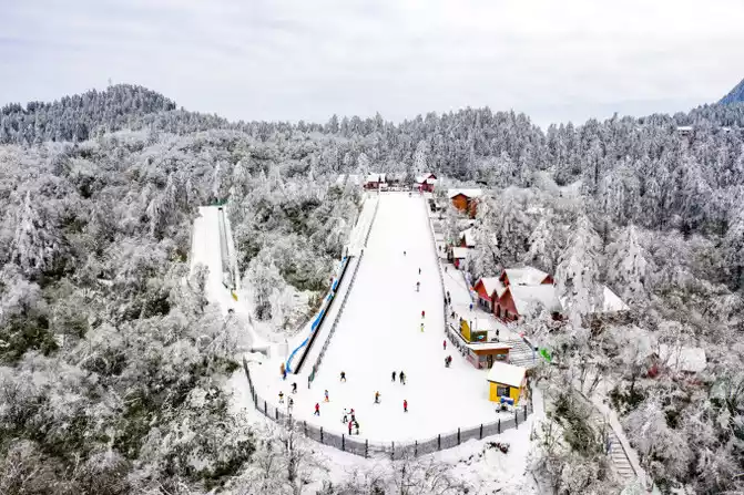 During the peak ski season, Emei Mountain Ski Resort, which was rated as the "Top Ten Ski Resorts in Sichuan and Chongqing", covers an area of 15 acres, with an average temperature of minus 5 degrees in winter and a snowy period of up to 4 months. The ski resort not only has alpine ski trails 300 meters long and 30 meters wide, but also 800 square meters of gentle terrain suitable for beginners to practice, skis, rainbow slides, spaceships and other projects are all available.