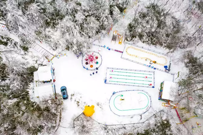 This year's ski resort has also upgraded the ice and snow children's playground and launched the new "Thunder Cave Smoke Cloud Starry Sky Camp", where tourists can stay in a variety of characteristic wooden houses and themed tents.