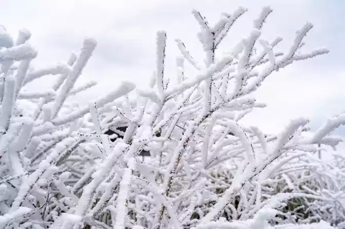 In winter, clouds envelop the snow on the mountainside, and the flowers emit a stream of mist......
