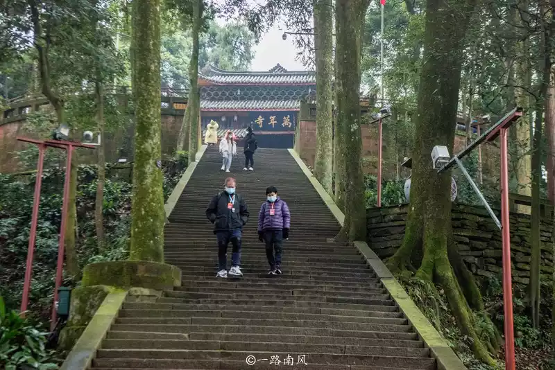 The entire Wannian Temple is surrounded by lush trees, and you need to walk a bit steep to enter the temple, and you have a pilgrimage feeling step by step.