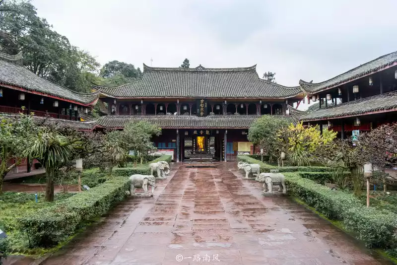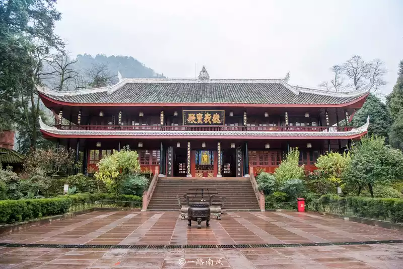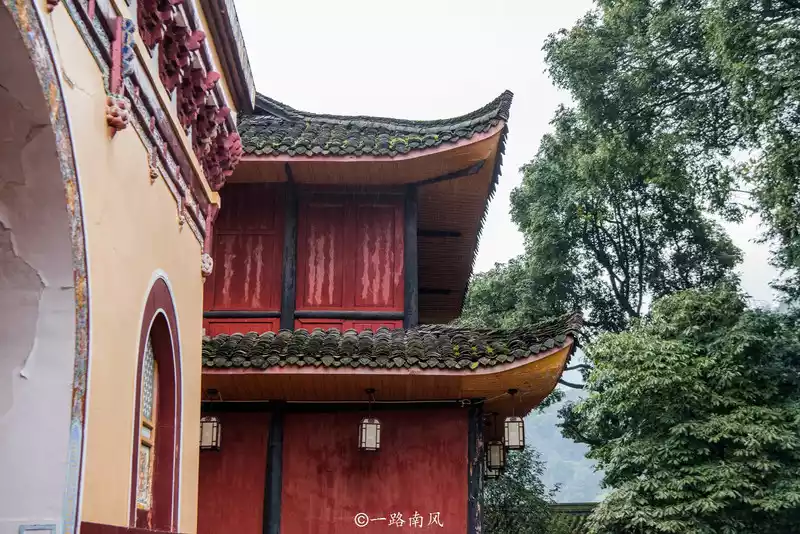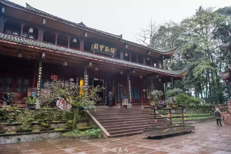 Wannian Temple sits west and faces east, the main hall and wings are given into a courtyard, most of the buildings are wooden buildings, only the brick hall is a masonry dome, no matter from which angle it is very prominent, this is also the unique feature of Wannian Temple, it is said that the Tang Dynasty poet Li Bai visited Mount Emei when he visited this temple, and the monk Guangjun personally played the piano for him, and the two talents met, naturally cherishing each other.