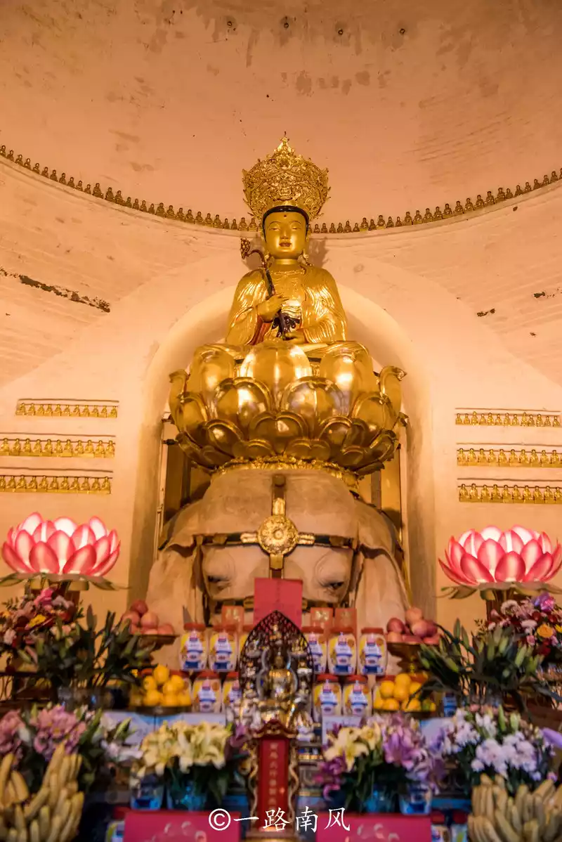 The beamless brick hall of Wannian Temple has a unique shape, completely different from the temple of Han Buddhism, it looks a bit like a yurt from a distance, the bronze statue of Puxian in the hall is the largest existing ancient bronze Buddha statue in China, and it is also one of the largest existing ancient metal castings, the lotus platform is brass, the white elephant is bronze, the whole Buddha statue and mount are cast in many places, most of them are made locally in Emei Mountain, and some are made in Chengdu.