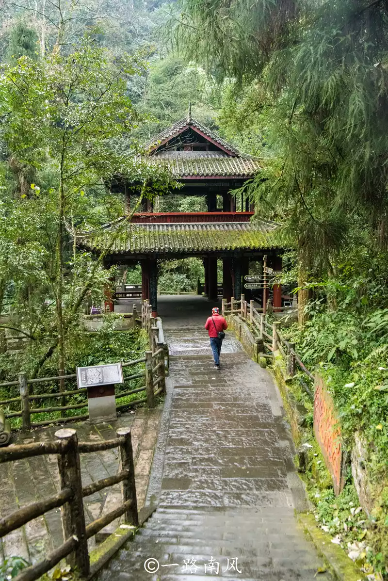 rain comes and goes, the trails and arch bridges are gradually wet, and the grass and trees become more and more verdant under the nourishment of the rain, if you don't see it with your own eyes, It's hard to imagine that the mid-mountain of Mount Emei in winter is still so green.