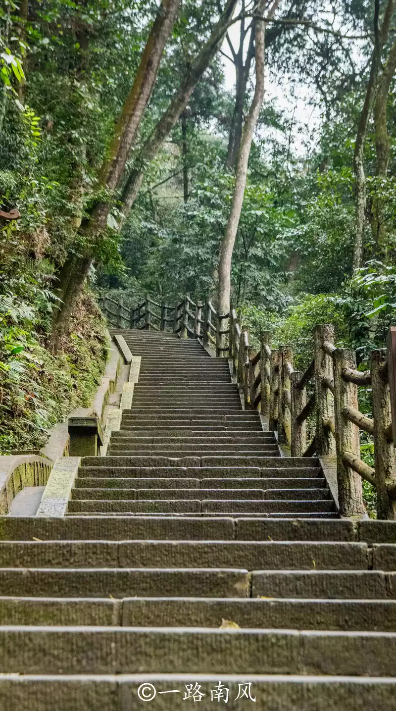 hiking route condenses the essence of cultural tourism and natural scenery tourism in Mount Emei, and the process requires crossing mountains, walking through all levels of stairs and streams, and the green trees, birds and flowers along the way, It's not very pleasant.