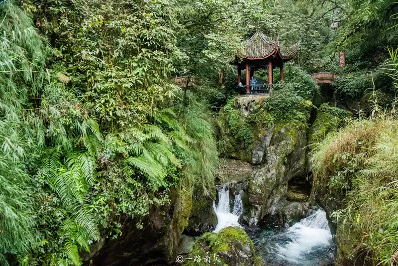 Leaving the White Dragon Cave and walking a short distance to the Qingyin Pavilion Scenic Area, it is located under Niuxin Ridge, about 710 meters above sea level, the history can be traced back to the Tang Dynasty, the early Ming Dynasty was changed to Qingyin Pavilion, although there is only one hall, but it is condescending and surrounded by mountains and waters, the terrain is very dangerous, and there is also the "Double Bridge Qingyin" listed in the ten scenic spots of Emei Mountain.