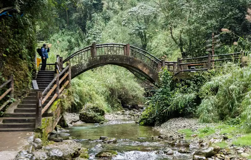 The double bridge Qingyin is located in the center of the upper and lower mountains of Mount Emei, but there is a pavilion built on the boulders of the mountain stream, lined with two gurgling streams, and there are two arch bridges built on the stream, forming the momentum of the two bridges arching the pavilion, the forest next to the creek is lush, the environment is quiet, and there is a bit of mystery in the tranquility, as if it is a place where many stories happen.
