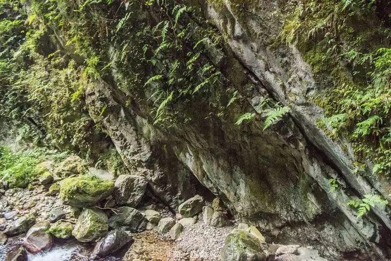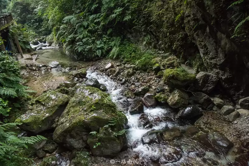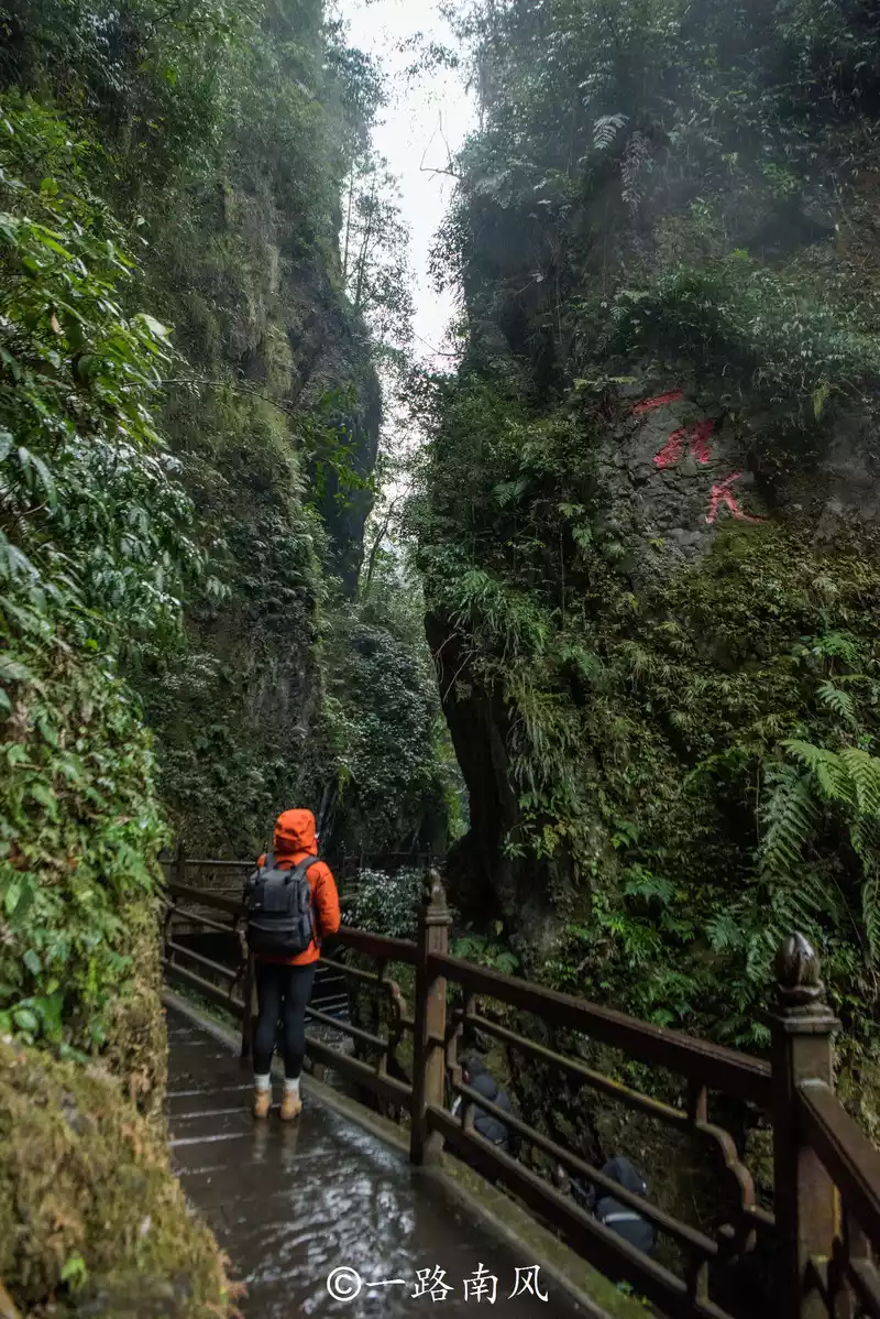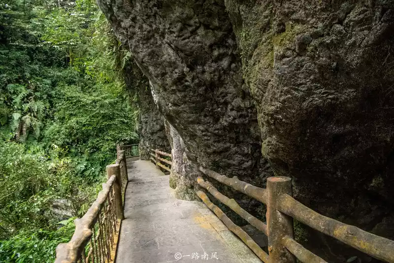 Continuing on, the road is not difficult to walk, but the mountains and cliffs on both sides are very steep, like huge barriers towering in front of you, and some stone walls do not grow a blade of grass. Some stone walls are covered with moss, or ferns.