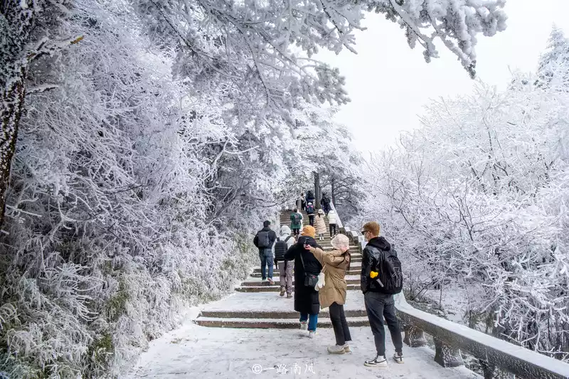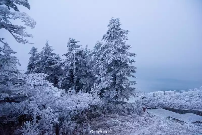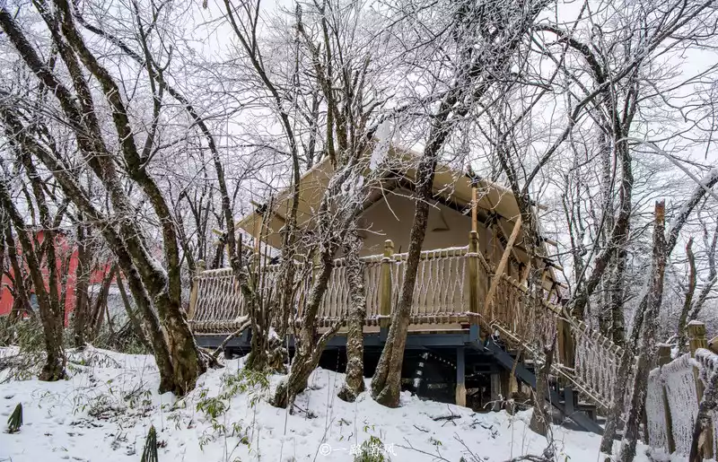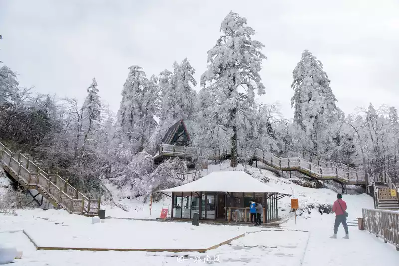 In order to enjoy the sunset and sunrise, we came to Leidongping a day in advance, although we couldn't see the sunset because of the weather, but we happened to encounter a heavy snowfall, and the next morning we hiked 1.5 kilometers to take the cable car to the Golden Peak, but we saw a white expanse along the way, and the strange rime wonder made us look forward to the Golden Peak trip.