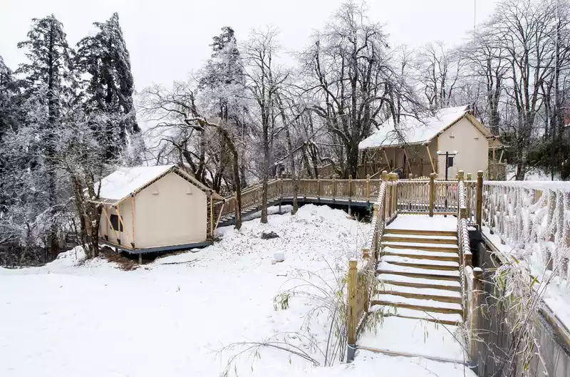 This year is the first time that the "Thunder Cave Yanyun Starry Sky Camp" has entered the ice and snow season, staying in various characteristic wooden houses and themed tents, counting the stars at night, enjoying the snow scenery during the day, and the holiday is perfect.