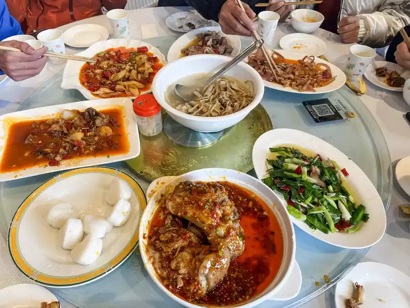 many places to eat near Emei Mountain Hotel, Leidongping, and along the hiking route, and the food is mainly Sichuan flavor, and the taste is very good. There are also many gourmet restaurants in the Golden Dome, and we chose the food forest, which did a good job of dining around the table.