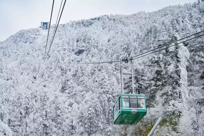 The golden peak of Mount Emei is 3,079 meters above sea level, which is the highest point of Mount Emei, the end of the mountain. Although the Golden Dome is high, it is now easily accessible by round-trip ropeways. It's better to take the car to the ropeway station first, when I was about to arrive at the ropeway station, it was already very beautiful, and I was able to encounter the snowy scenery, so I didn't come in vain this time. As soon as you get off the bus, you can't wait, and after getting on the cable car, you are even more attracted by the surrounding scenic spots.