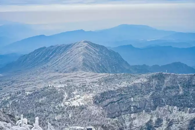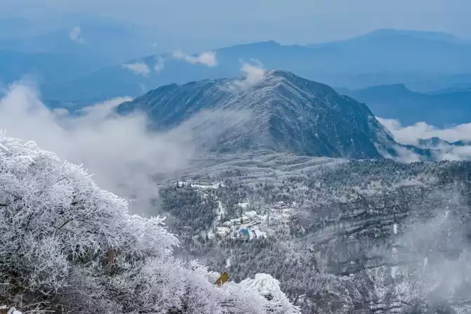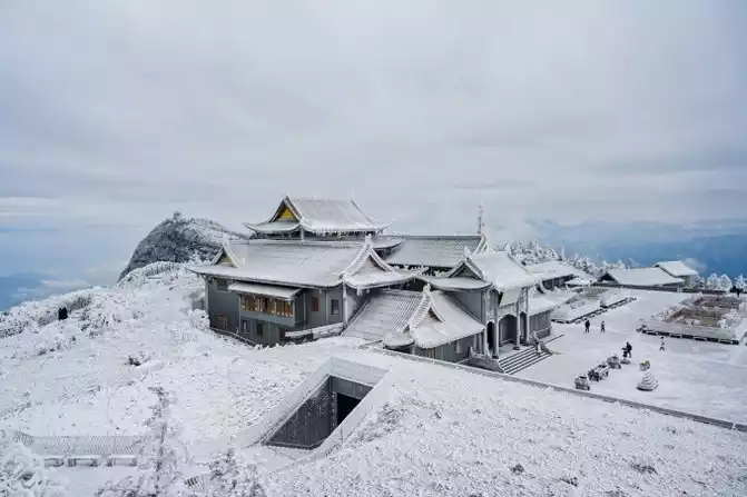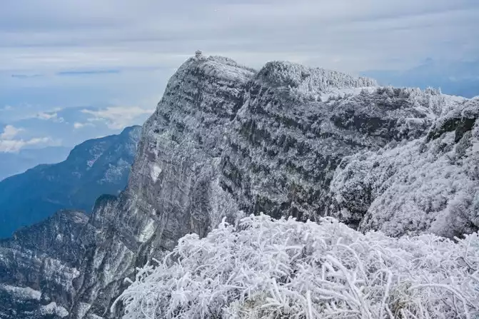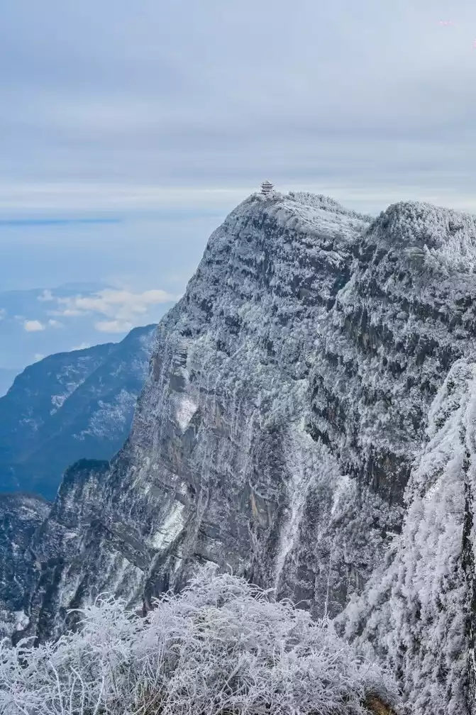 I have to say that the luck this time is really good. Because it has just snowed, the sky is clear, not only the snowy air is also particularly transparent, which is really hard to find. The top of Mount Emei, which is 3,099 meters away, is called the Top of Ten Thousand Buddhas, and the cliff wall here is the most steep from a distance, which reflects the magic of nature. If you need to take pictures of the sunrise and sunset, you can also choose to stay at the Golden Peak Hotel. Because the transportation cost on the mountain is high and resources are scarce, the accommodation conditions on the top of the mountain are not as good as those at the bottom of the mountain, but the price is more expensive!