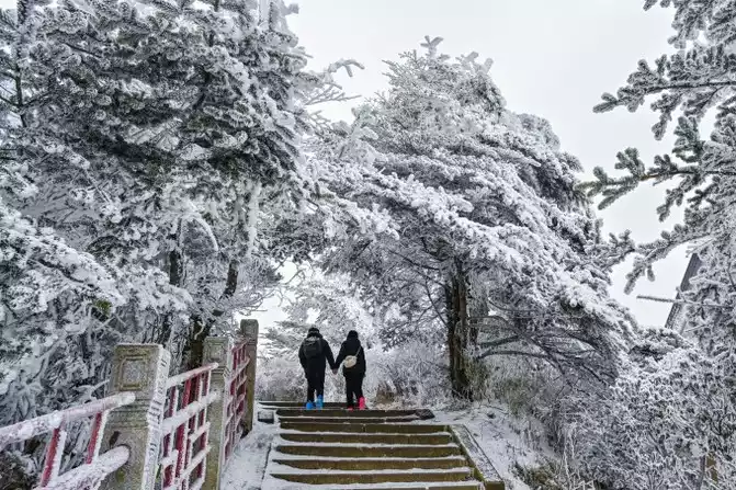 Reach the Golden Peak! Despite being at the top of a mountain, it is still full of attractions, with buildings complementing the natural beauty. The rime wonders in winter are also truly amazing, and after the snow, it is like being in a fairy tale world. Here, even if my hands were so cold that I didn't want to take it out of my pocket, I couldn't resist the temptation of the beautiful scenery and pressed the shutter wildly. At this time, all the text looks pale and weak, and what the eyes see on the scene is more shocking than the photos.