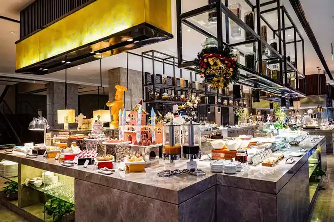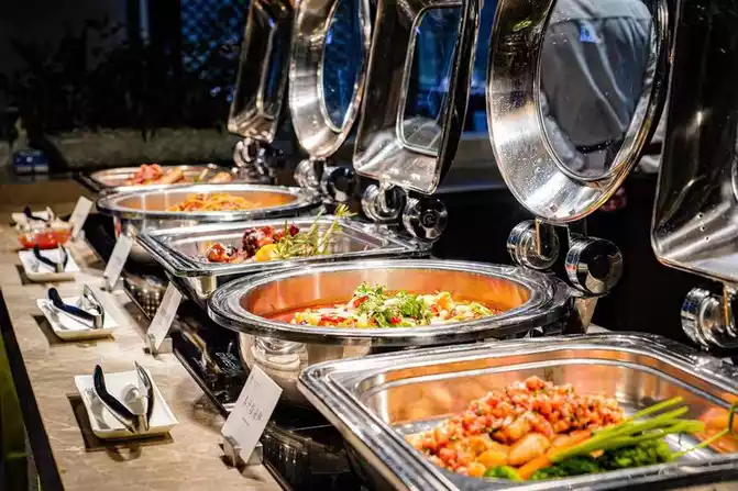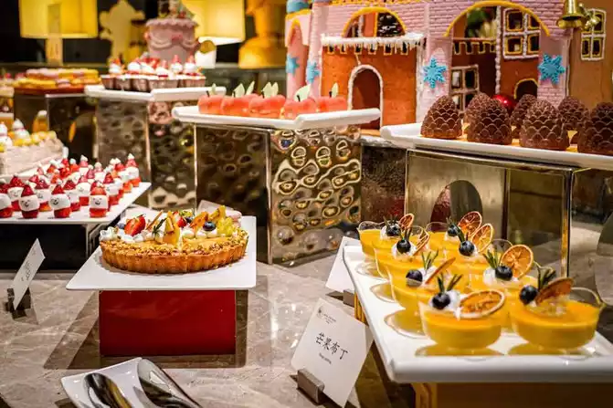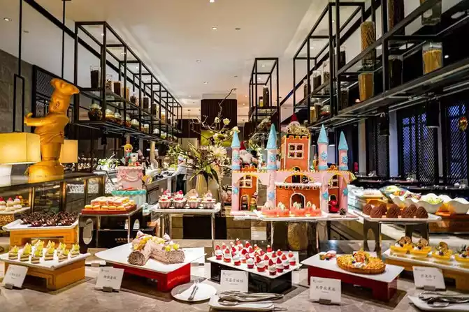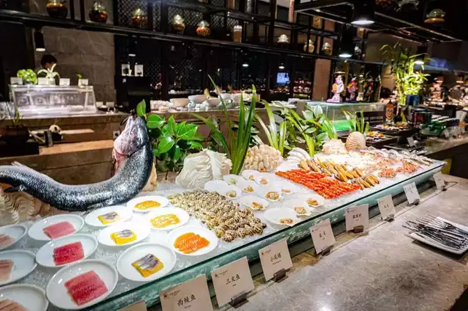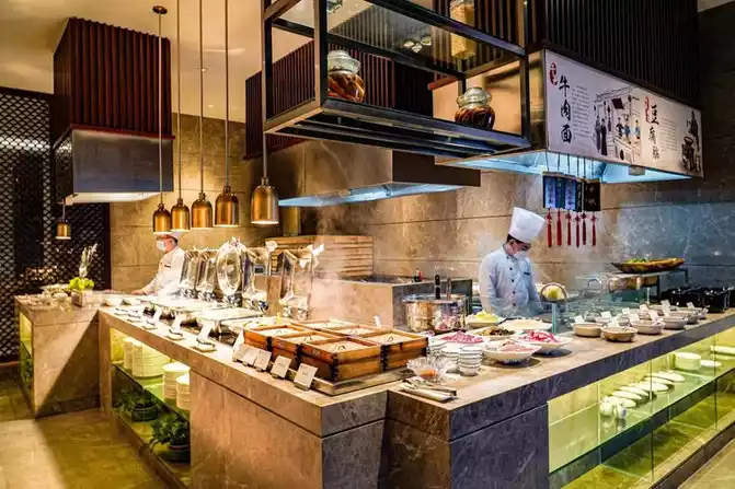 The buffet restaurant of Zen Mountain Residence in Emei Mountain Hongzhushan Hotel is a good place not to be missed to enjoy delicious food!