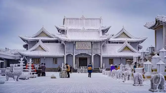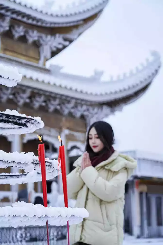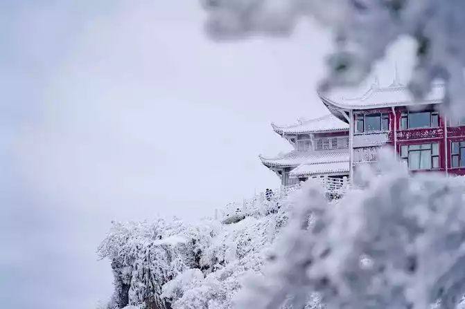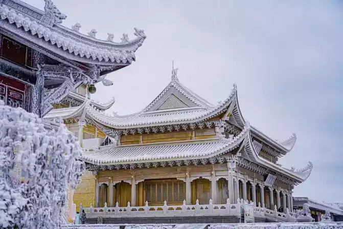 Golden Dome Copper Hall: At the highest point of the Golden Dome, there is a rare treasure called the "Golden Dome Copper Hall"; Thousands of years of history and a hundred years of wind and frost have been precipitated here, and the roof tiles of the whole building are gold-distilled, under the sunlight, shining golden and shining for hundreds of miles, so it is named the golden roof. Now that winter is coming, it is once again on the Golden Dome of the Copper Hall, covered with snow on all sides, making the land more solemn. Sunny days are suitable for missing, winter is suitable for meeting, and perhaps only the snowy world is more exciting. The dazzling story in the summer heat condensed into ice in the ice and snow in the blink of an eye.