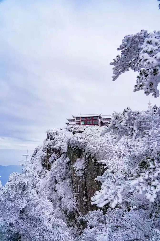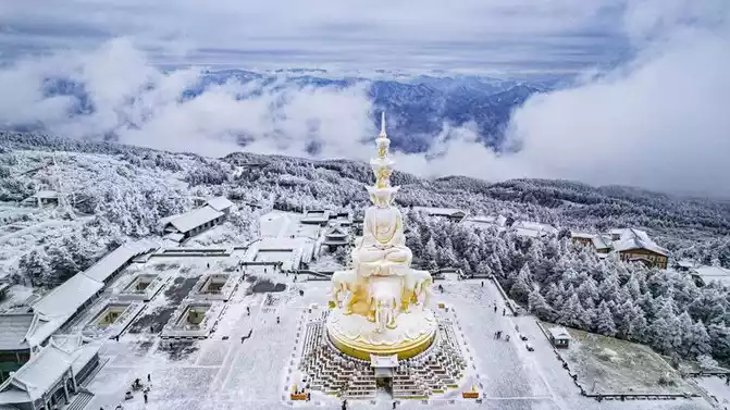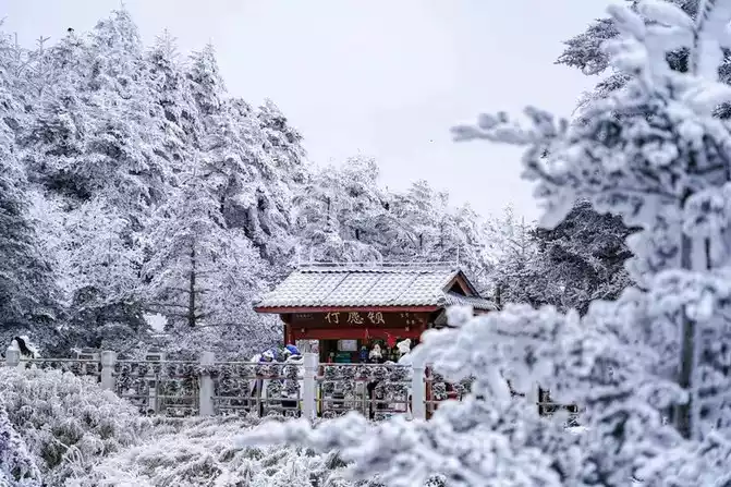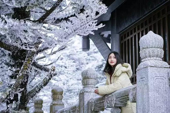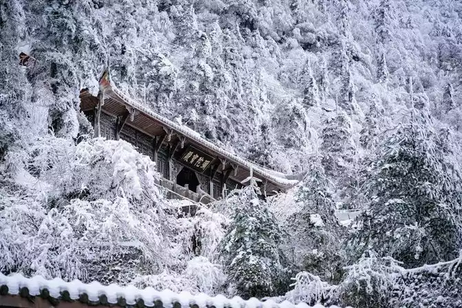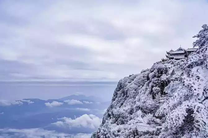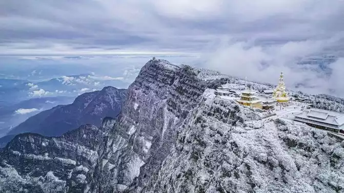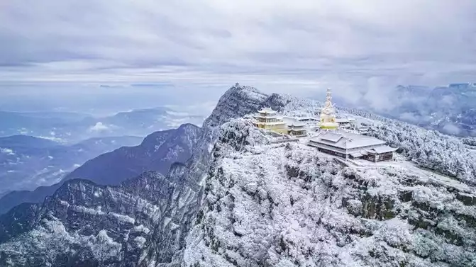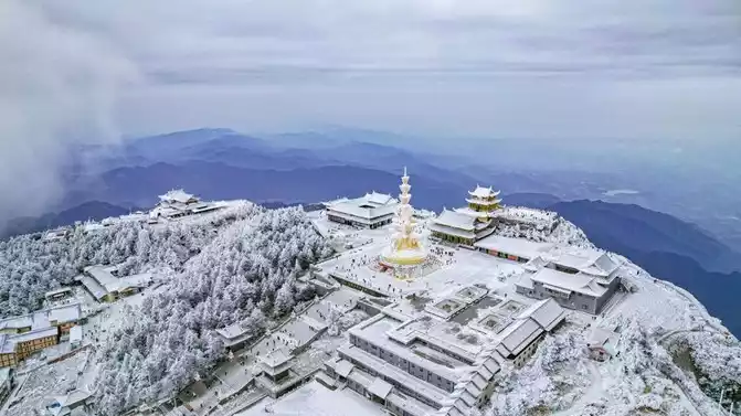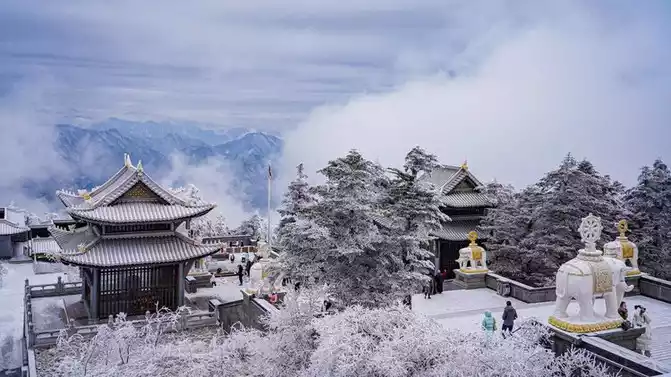 Huazang Temple: The Golden Peak Huazang Temple is built on the mountain, with an altitude of more than 3,000 meters and a cold climate; Climbing to the Golden Peak is the greatest wish of all tourists and pilgrims to visit Emei and worship Puxian. Here, people can not only burn incense and worship Buddha and linger in the world of God, but also appreciate the magical landscape of nature: sunrise, sea of clouds, Buddha's light and magic lamp. If you want to experience the magic of nature, you must not miss the golden peak of Mount Emei, especially in winter, everything here seems to only appear in dreams, as the so-called dream and reality are silly and silly. Baixue and Baiyun were confused together, reaching out to touch, but the cold touch on his fingertips didn't know whether it was clouds or ice and snow.