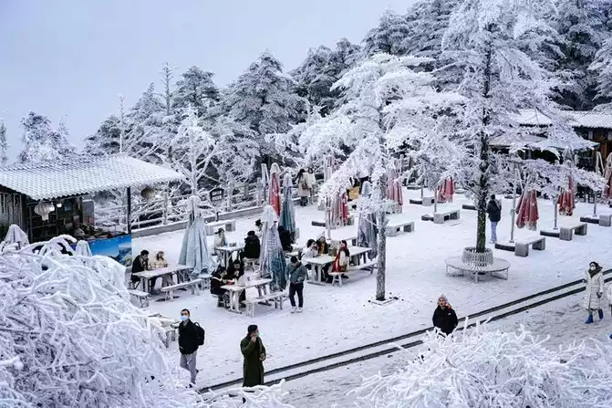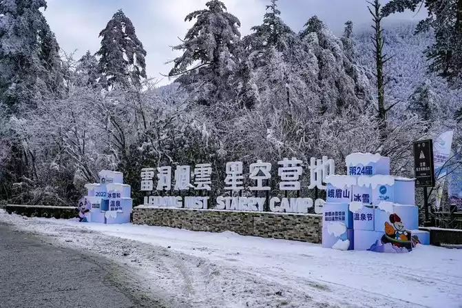Emei Mountain Ski Resort was newly built in 1998 and was the first ski resort in Sichuan at that time. It is located on the right side of the Leidongping parking lot road in the Emei Mountain Scenic Area, which is divided into the inner area of the ski practice park, the ice and snow slide area, the snowball fight area for tourists to play in the snow, the fireworks area for tourists to set off fireworks and firecrackers, the snow sculpture area for tourists to engage in snow sculpture modeling competitions, as well as parking lots, restaurants and other facilities.