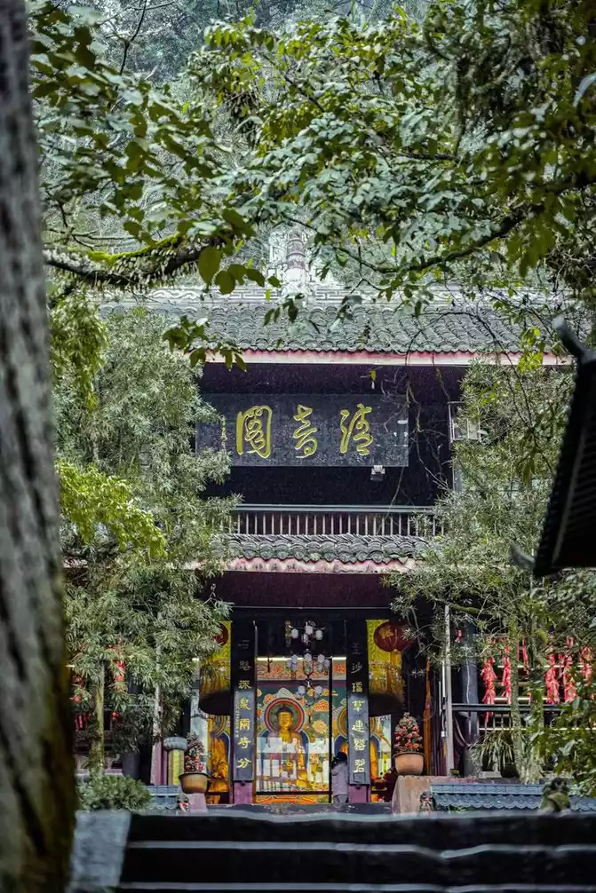Speaking of temples, Qingyin Pavilion is also a place worth walking on in Mount Emei, listening to the name, you should be able to think that the quiet environment in this place is the most impressive, especially in the season of light rain, walking in the mountains, the already ethereal atmosphere is more pure in Qingyin Pavilion, and you don't even dare to breathe hard here, let alone shout loudly, for fear that hasty actions will disturb the elves in the mountains.
