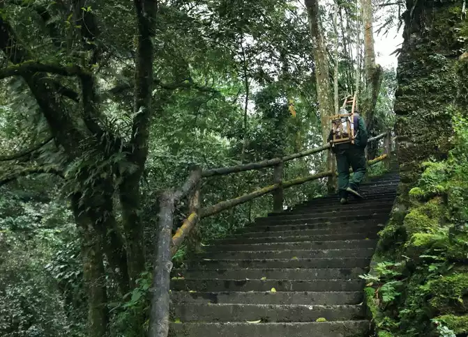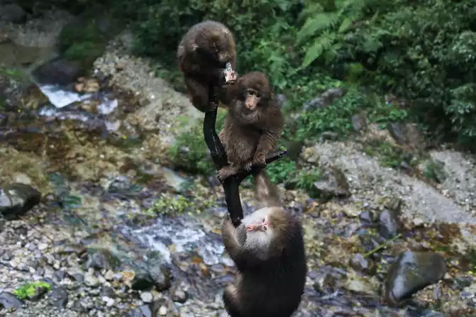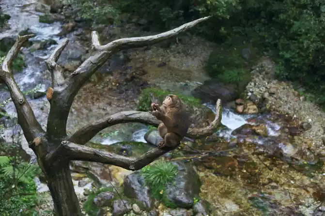 Once you arrive at Qingyin Pavilion, continue on the path on your right. The mountains and waters are beautiful, and the clear sound of flowing springs is in full view.Passing through the mysterious wonder "One Line of Heaven", you will continue to the ecological monkey area of Mount Emei.