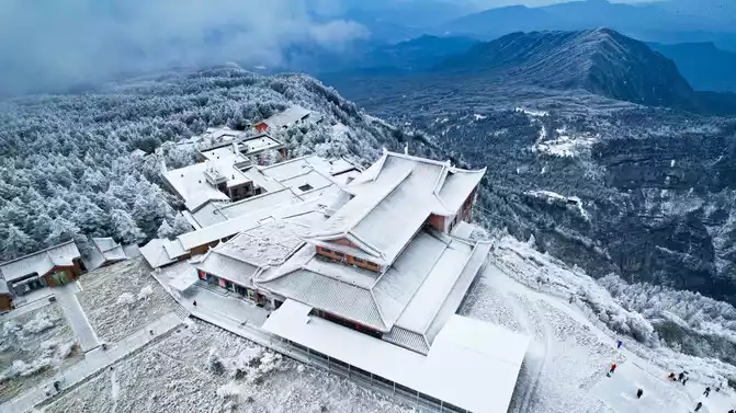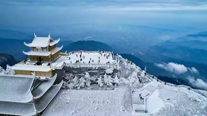 As the saying goes, "There are fairy mountains in Shu, and Emei's appearance is hard to match." Mount Emei in winter is even more charming. Hiking the plank road, stepping on the soft snow up the steps, surrounded by silver-clad rime, snow-capped mountains, Buddhist temples, cliffs, and ice lakes...... Everywhere is a deep and beautiful scenery, which is amazing.