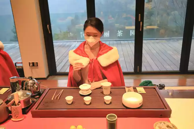 Come to the second floor of the Emei Xueya Pavilion, sit by the window, and watch the wonderful tea performance. Sit around the table, cook a pot of hot tea, gather here with three or five friends, and slowly taste the clear and mellow aroma of Emei snow buds.