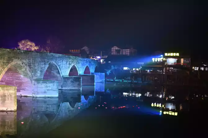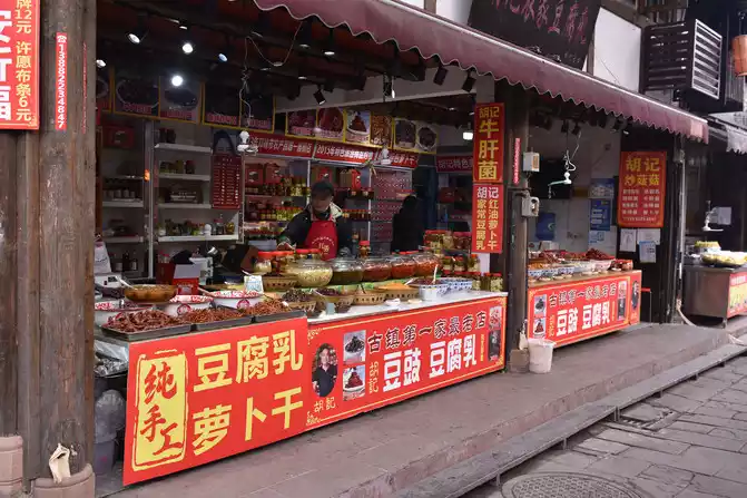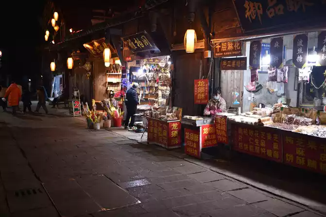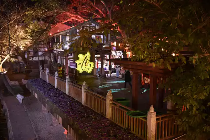 At around 8 o'clock in the morning, I took my dog out first. The morning in the ancient town is very clean, there are no people on the street, walking on the ancient street, by the river, walking and watching, very comfortable, along the main road, nearly 1 hour, the ancient town is basically finished. Then I went back to the hotel, went out for breakfast and lunch together, and basically had two meals a day in the past few days when I went out to play. Another purpose that came out this time is Sichuan food, any small restaurant in Sichuan, the taste is very authentic, which is why we often come here. Breakfast was solved at the small restaurant next to it, and I asked for brown sugar mash eggs, steamed buns, fried tofu, etc., which tasted good, and I went to the ancient town after eating. Following my morning route, I went around again, and at 12 o'clock, I found a tea house by the river, and the four of us just got together a table of mahjong, so we spent the afternoon playing mahjong. In the evening, I found a hot pot in the town, called Huainan Old Hot Pot, recommended by the locals, but fortunately I went early, and there was no place if I was late. The taste of hot pot is more authentic, four people spent more than 320, not cheap, after eating hot pot, they went back to rest, and I came out alone to take pictures of the night view. During the Chinese New Year, the night scene of the ancient town was also well arranged, and after a quick turn, I went back to rest.