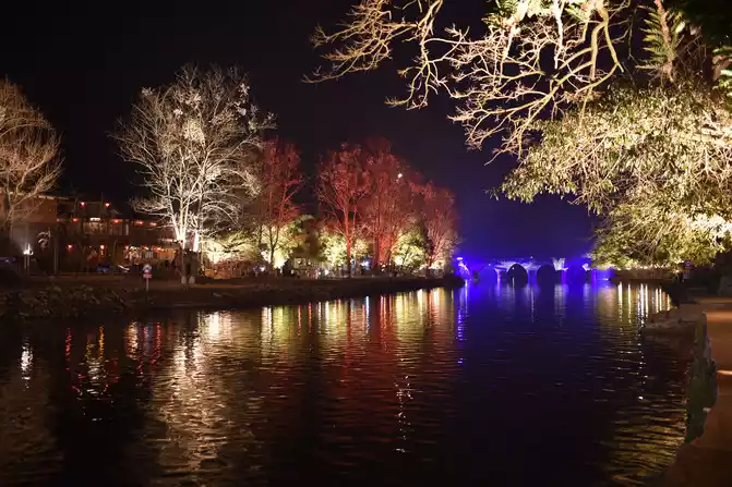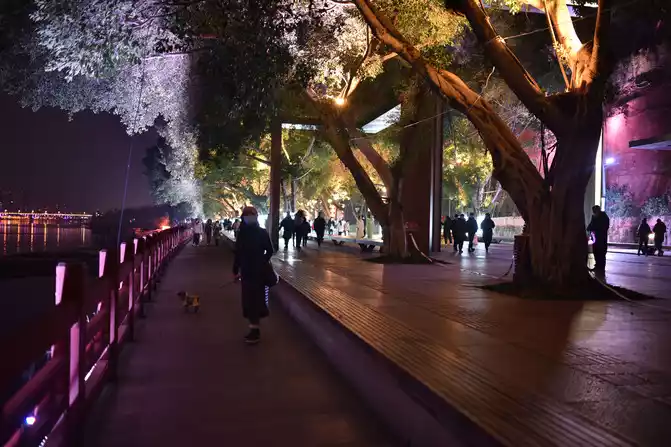 After eating, the two of us took our dogs and walked all the way to the gate of the Leshan Giant Buddha Scenic Area, all the way to the river, and saw that the city opposite was brightly lit, much more prosperous than here. During the Chinese New Year, there are lantern exhibitions, night markets, etc. at the gate of the Leshan Giant Buddha Scenic Area, and you need to buy a ticket to enter the lantern exhibition, so you don't go in to see it. After a turn, I went back, and this circle went back and forth for more than 5 kilometers.