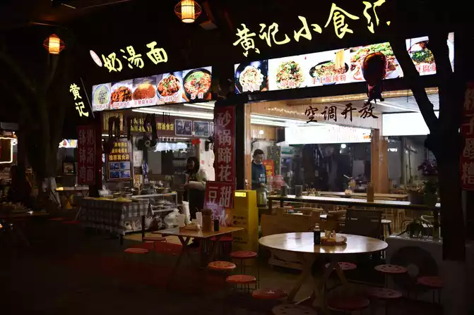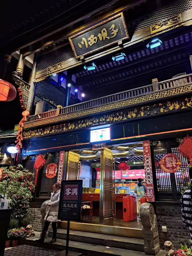The hotel in Huanglongxi Ancient Town is also found on China-TravelNote, Qingxi Valley Hotel, the evaluation is good, the price is more than 400 one, the hotel's internal environmental facilities are available, that is, it is written in the scenic area, in fact, there are still 1.2 kilometers away from the gate of the scenic spot, and the walk is still a bit far. We arrived at the hotel at 2:50 p.m., took a short rest after checking in, because there was an old man, so we drove to the ancient town at almost 4 o'clock. Huanglongxi Ancient Town is relatively close to Chengdu, so every holiday and weekend Chengdu people love to run to the ancient town, I have come this time for the fourth time, so I am familiar with the road, lead them around, mainly a main street, selling food, drinking, playing, follow the flow of people forward, there is a water system in the middle of the street, the environment is not bad, to the end is the Fu River, the river is to drink tea, but few people drink tea. There were still some scenic spots on both sides of the town, and they were not interested in turning, so they went back. Chengdu hot pot has not been enjoyed yet, so I searched for a well-known and relatively close hot pot, Sichuan West Bazi, which has a branch in Chengdu Huayang, 30 kilometers away from Huanglongxi, more than 40 minutes by car. I came out of the ancient town at 6:20, drew a number online in advance, and rushed to the Bazi hot pot restaurant in western Sichuan at 7 o'clock, which was already overdue, but fortunately, the waiter asked us to wait for a while, and then arranged a table for us. The hot pot restaurant is very large, the business is hot, the taste is authentic, and 4 people spent 425 yuan, which is cheaper than Haidilao. After eating, it was 9:20, and it was faster to drive back, and there was no car on the road, so it took half an hour.