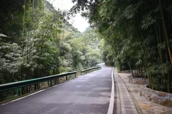There are two bamboo seas around the ancient town, the bamboo sea in western Sichuan has good scenery and is a scenic spot, but if you want to climb the mountain, the old man will definitely not be able to climb, and there is a Lugou bamboo sea on the edge of the ancient town, which can be directly up by car. After eating at nearly 12 o'clock, I decided to go around the Lugou Bamboo Sea first, and then go to Leshan. The entrance to Lugou Bamboo Sea is very close, it takes two kilometers to drive, drive up the mountain road, the road is very narrow, and it is not easy for both cars to meet the car, but there is no car on the road, which also shows that no one comes to this attraction. After driving 7 or 8 kilometers, we saw some bamboo planted on both sides of the road, but the air was good, and we didn't drive to the end, so we returned.