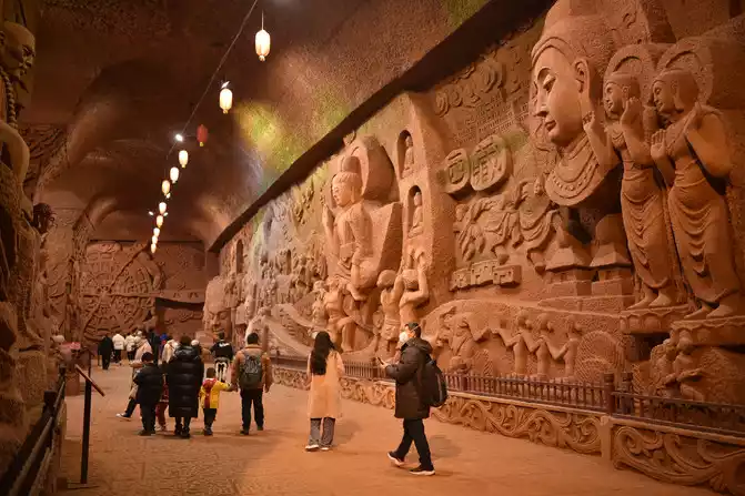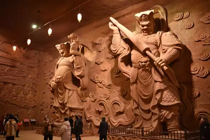 At 1 p.m., I returned to the bottom of the mountain, navigated to Leshan Hongjia Hotel, a whole journey of 160 kilometers, and set off directly. At 2:50 p.m., I arrived at the Leshan Hongjia Hotel, which was also booked on China-TravelNote, close to the scenic spot, next to the gate of the Oriental Buddha Capital. However, I do not recommend this hotel, it is a two-story bungalow on the side of the road, 587 yuan per room, which is usually estimated to be more than 100, and there is no way to increase the price during the holidays. In fact, you should live in the city of Leshan, you can go around the city at night to eat, and here you can only see the cars on the road at night. Although the hotel is only 5 or 6 kilometers away from the city, the traffic jam is serious these days, and it takes 1 hour to drive there, which is very inconvenient. After putting down the things and going around the Oriental Buddha, the Oriental Buddha should be the attraction that was built later, on the back of the Leshan Giant Buddha, there is a road directly to the Leshan Giant Buddha, but you have to buy tickets for the Leshan Giant Buddha in advance. The ticket to the Oriental Buddha Capital is 80 yuan per person, but fortunately, you can bring a puppy in, since you are here, go in and take a look. Dogs are not allowed in the Leshan Giant Buddha Scenic Area, and we have no intention of going in.