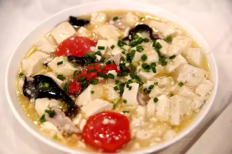 My wife and I took three elderly people and a group of five people for lunch at Fangde Xiba Tofu, although Xiba Tofu is known as more than 100 kinds of tofu dishes, we can only order a few items, and we have to take care of the taste of the elderly. The wife ordered crab roe tofu pudding, lantern tofu, three fresh tofu, silver carp tofu and shredded beef, and then looked at the nest head on the table next to her, and added another one, a total of 230 yuan.