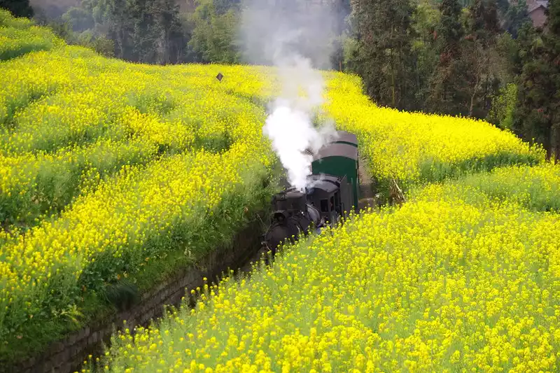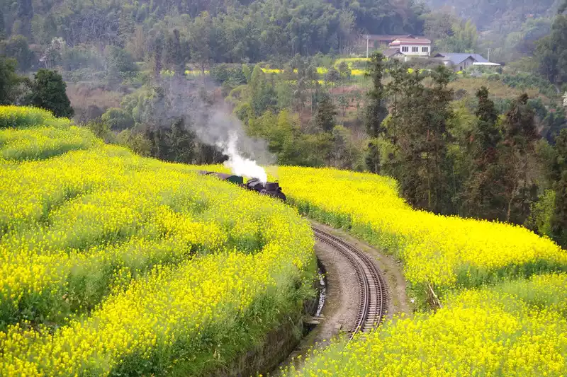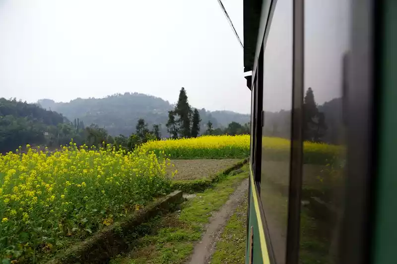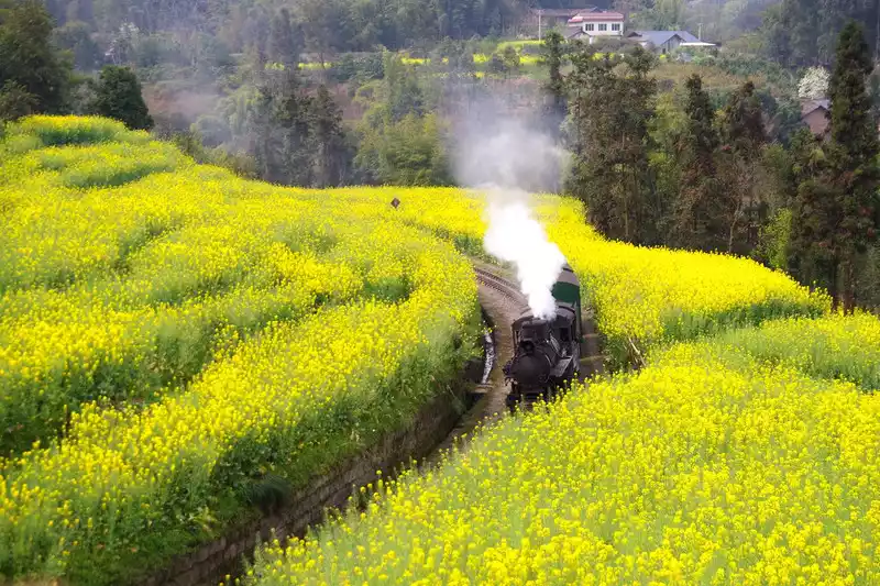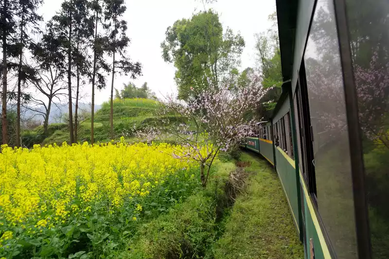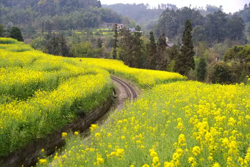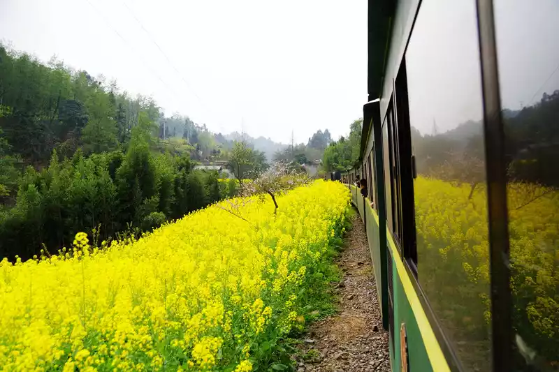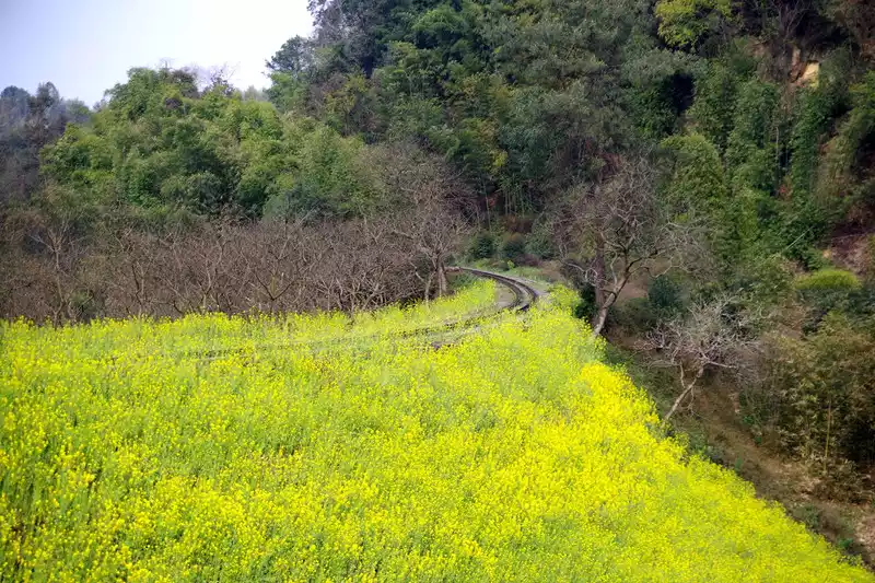 In fact, the Jiayang train has now created several flower seasons, you can take pictures, but this period of time is when the rape flowers are in full bloom, the week of the day we go (March 15), it should be regarded as the tail of the rape flowers, you may be able to see some in the next few days, and in a few days, it is estimated that there will be basically nothing left of the rape flowers.