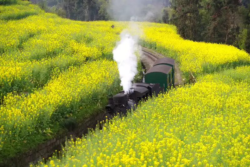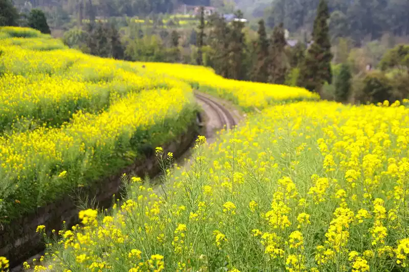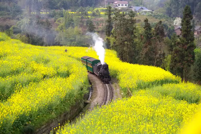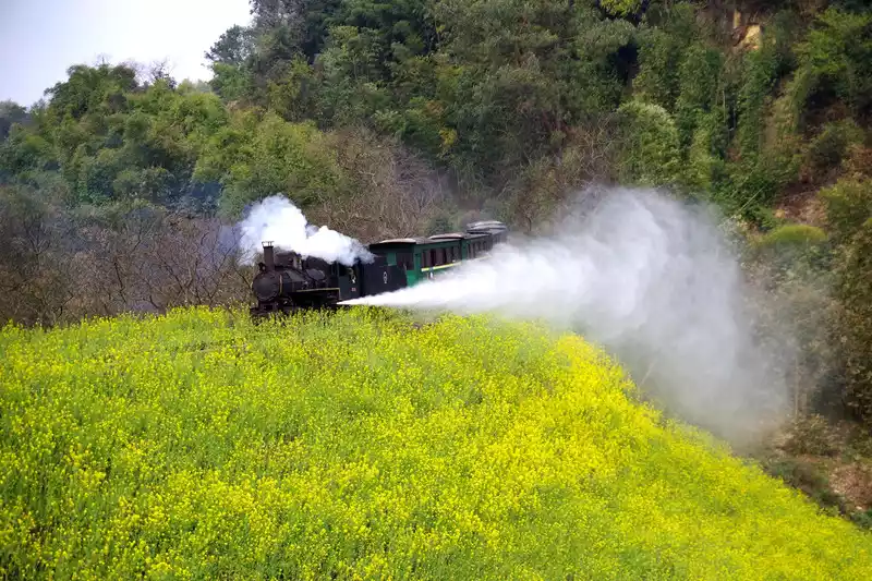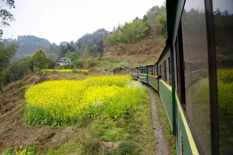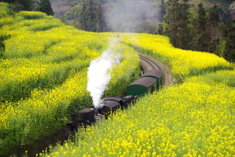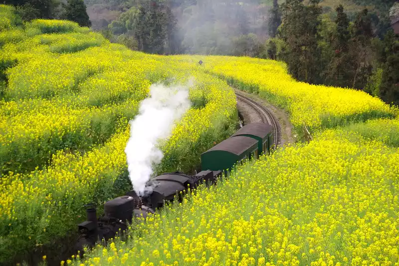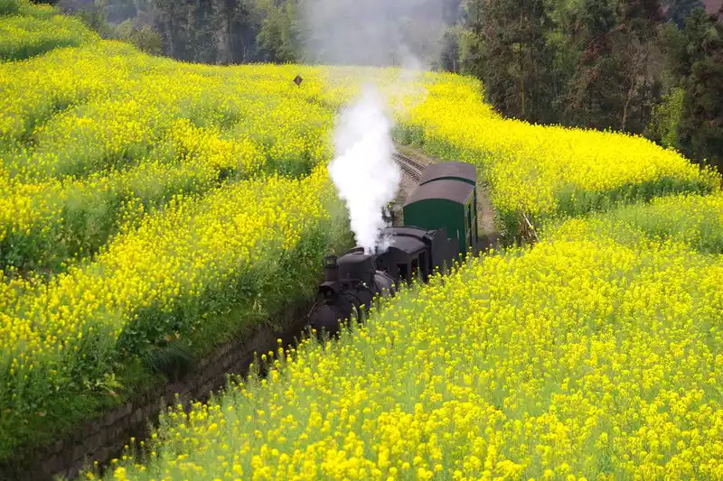In fact, the Jiayang train has now created several flower seasons, you can take pictures, but this period of time is when the rape flowers are in full bloom, the week of the day we go (March 15), it should be regarded as the tail of the rape flowers, you may be able to see some in the next few days, and in a few days, it is estimated that there will be basically nothing left of the rape flowers.