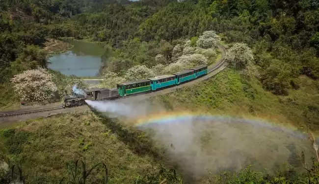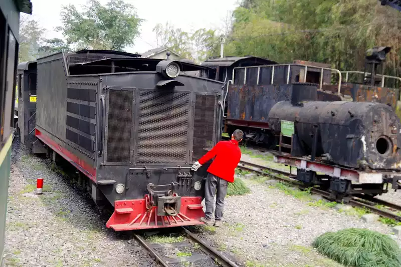 long after here, we stopped again, but didn't get off, because the previous was a climbing section, and we kept going up the mountain, so the train used an internal combustion locomotive. Here the front of the locomotive was changed again, and it became the steam locomotive that everyone was looking forward to.