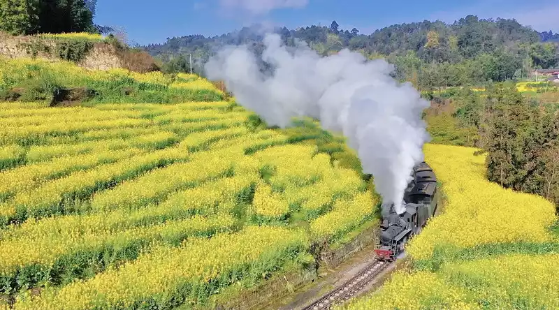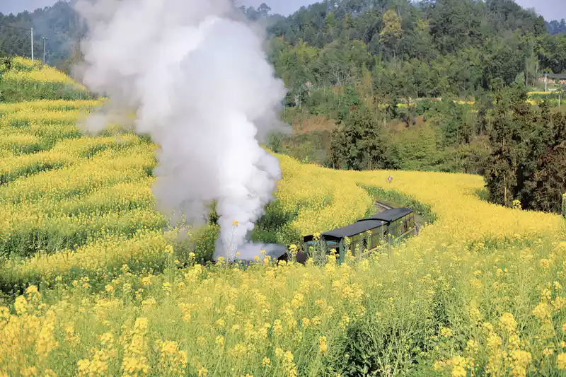 When taking the steam train, it is recommended to sit in the window position of the last carriage, because the train will perform a steam show on the way, the last carriage has the best shooting effect, and the best observation deck after getting off the train is Duanjiawan, you must not miss it, this is one of the best scenery shooting locations in Sichuan rated by China National Geographic, and it is a blockbuster!