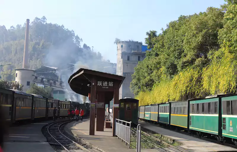 The Jiayang train is the product of the first industrial revolution and the only passenger narrow-gauge steam train in the world that is still in operation. It can be called a living fossil of the industrial revolution. Because its gauge is only 76 cm, it is called "inch gauge".