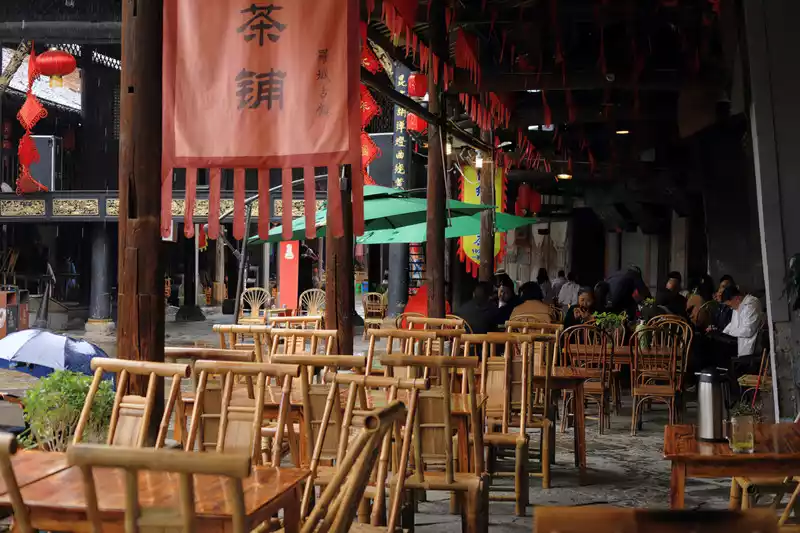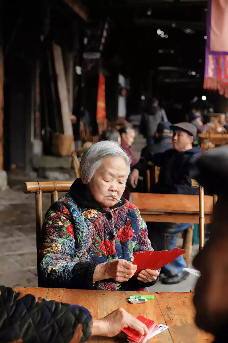 Walking into the ancient town, you will find that there is no prosperity of commercial attractions, only a quiet and leisurely life, long rows of brick and tile houses with wooden structures, and various tea shops, Chess and card shop, walking on the street seems to have traveled to the sixties and seventies!