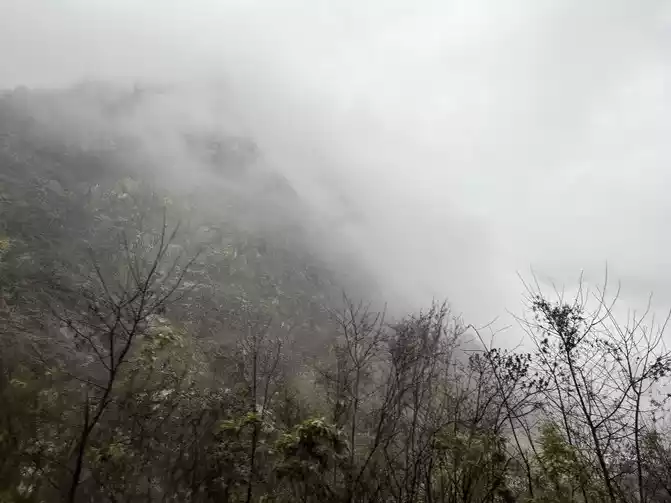 My careful thought is to get to Shuangqiaogou before the bus After almost half an hour of filming, I hurriedly set off for today's highlight of the Four Girls Mountain Shuangqiaogou Scenic Area~