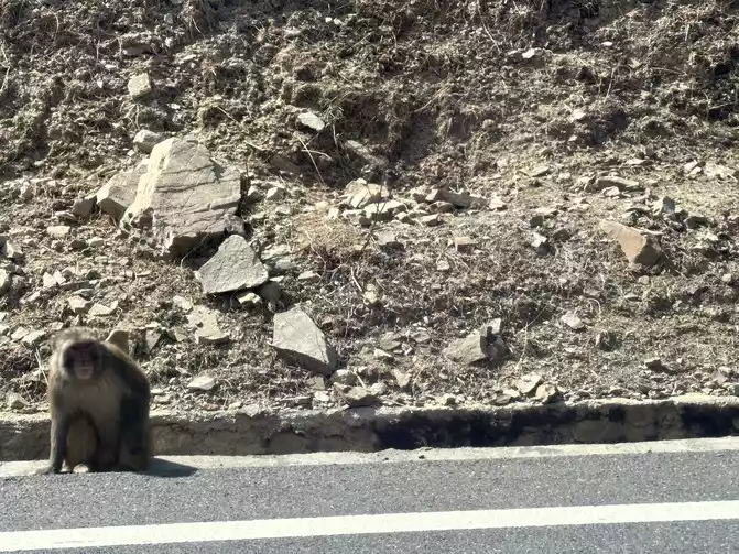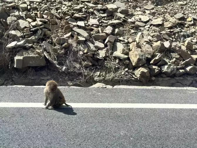 Then there are the monkey brothers who block the road and rob, there are many, many monkey brothers, we didn't feed the monkey brother, there is a car in front to feed the monkey brother, and then the monkey brother kept chasing the car, and the monkey brother who climbed to the car window and didn't leave, I can only say that the monkey brother who is the king of the mountain is really hungry at this time, and they all went down the mountain to forage for food, it's just too terrible...
