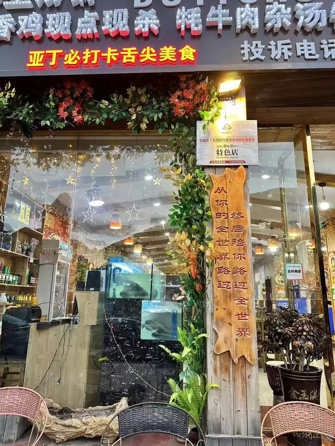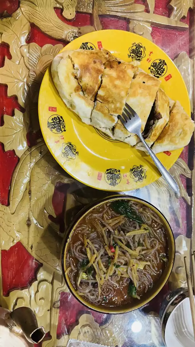 After seeing the rabbit and rat eating soil, we were also hungry hahaha, after checking in at the hotel at six o'clock, we simply cleaned up and went out to forage, I have to say that the streets of Seda County are a bit too quiet, different from the liveliness of Danba, and there are armed police on duty at the intersection of Seda County, to be honest, there is still a bit of fear. But hunger still overcame fear, or went out to forage for food, almost walked 800 meters to the "100 Tibetan meals", ordered the beef patty and beef powder soup I wanted to eat plus a pot of butter tea to relieve altitude sickness, I have to say that the beef patty is very crispy, the beef filling inside is very tender and delicious, it's worth it, I'm full to eat and drink, and I'm full of vitality hehe.