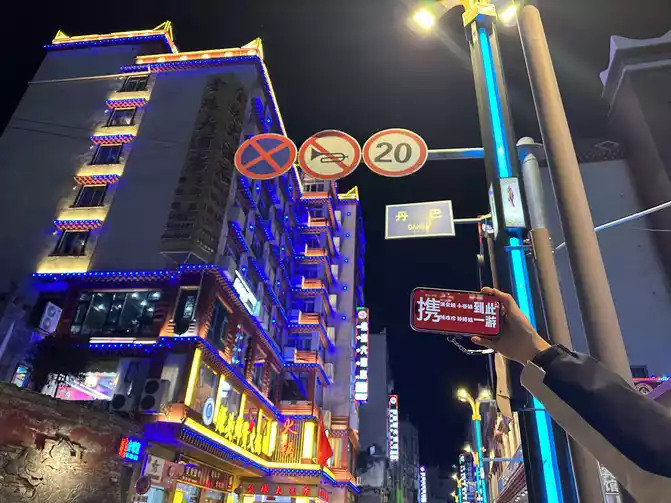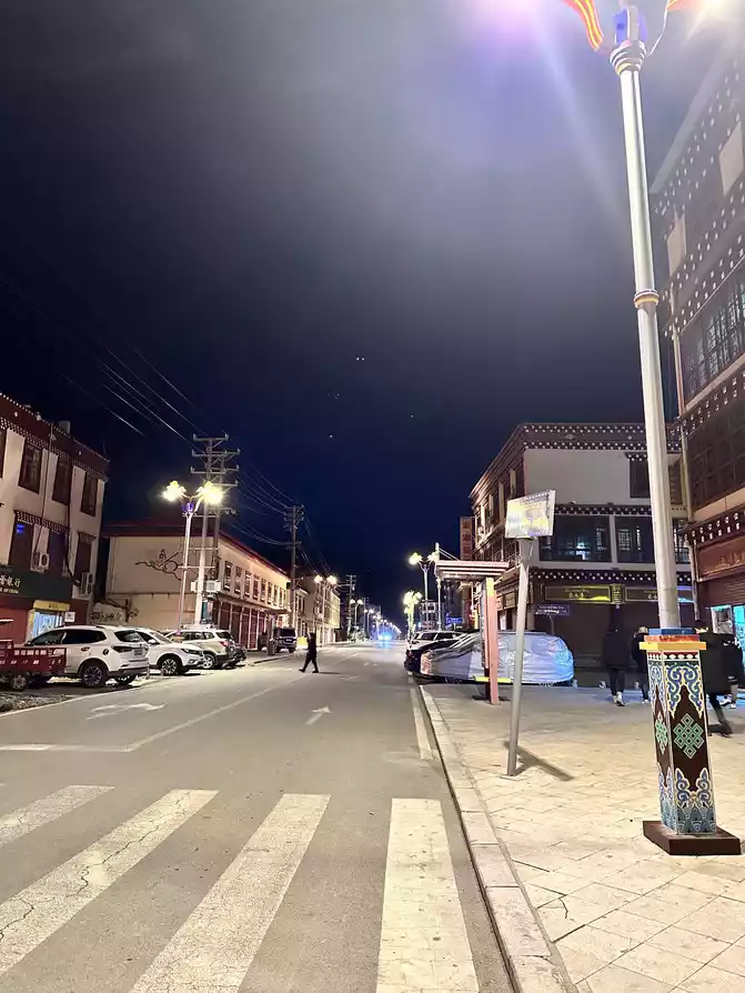 It's dark on the plateau, it's not dark yet, it's just dark after eating at eight o'clock, stroll back to the hotel along the quiet streets, ready to get up early tomorrow, Go to the Buddhist academy I have been thinking about ~