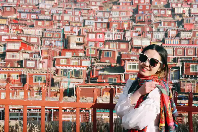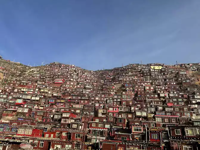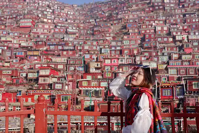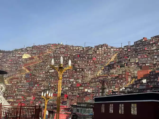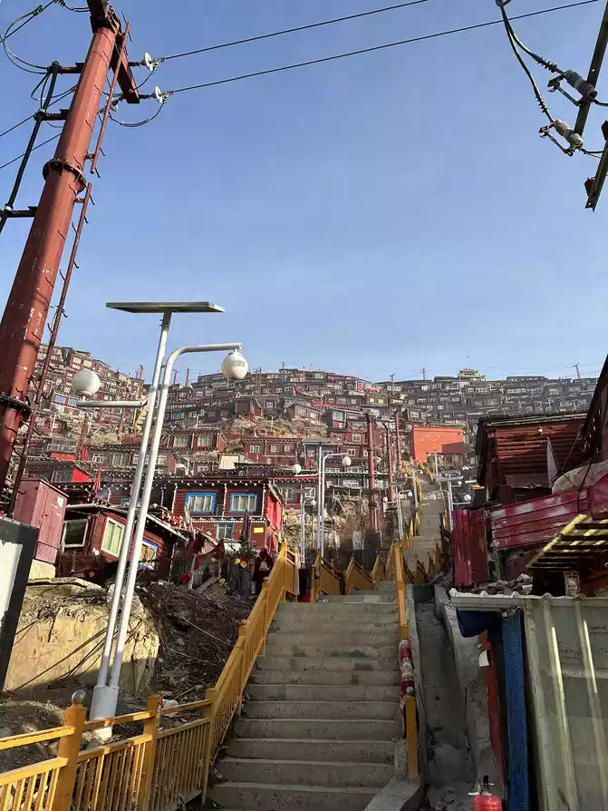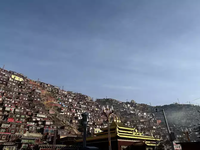 At more than eight o'clock, there will be uncles on duty who will go to work, come to the observation deck to bombard people, but they didn't say too much, just say that the shooting is almost over, and then everyone will go down obediently, and then everyone will disperse to the path, which can be regarded as continuing to play for a while, or go down the stairs, because it is past eight o'clock, the lama and Jue Mu inside have arrived at school time, watching them walk on the road and prepare to go to school, I really feel that the tranquility has never been felt, The Buddhist academy is really the spiritual destination of the confused, the utopia of the world, there is no way to describe it too much, only in that scene can you personally experience that rare quietness, and the whole person's heart is calm.
