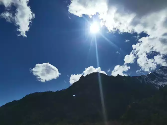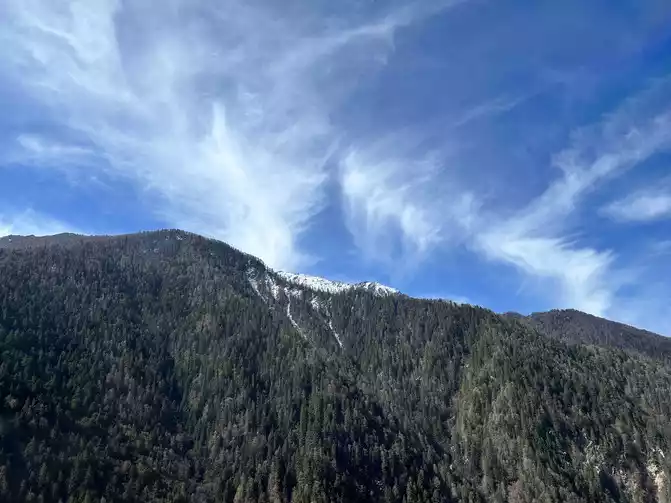 When I climbed the mountain in the fog, the little brother said that passing through Balang Mountain should be a clear sky, and then when passing through Balang Mountain really saw the clear sky, I just wow, and I feel that the sky is really clear, and it is really beautiful.