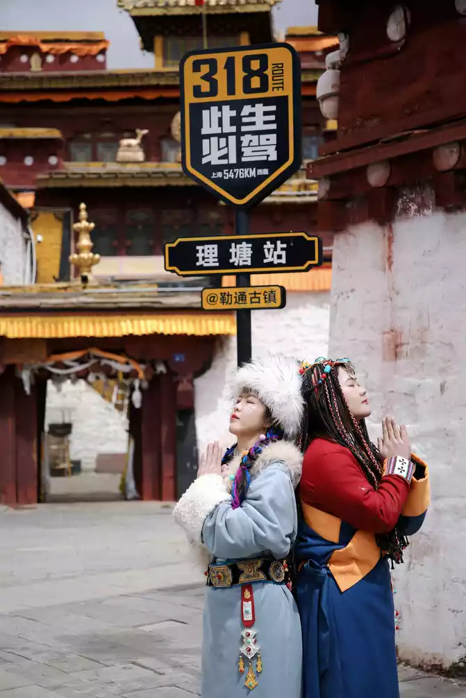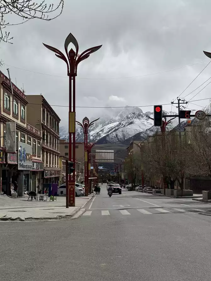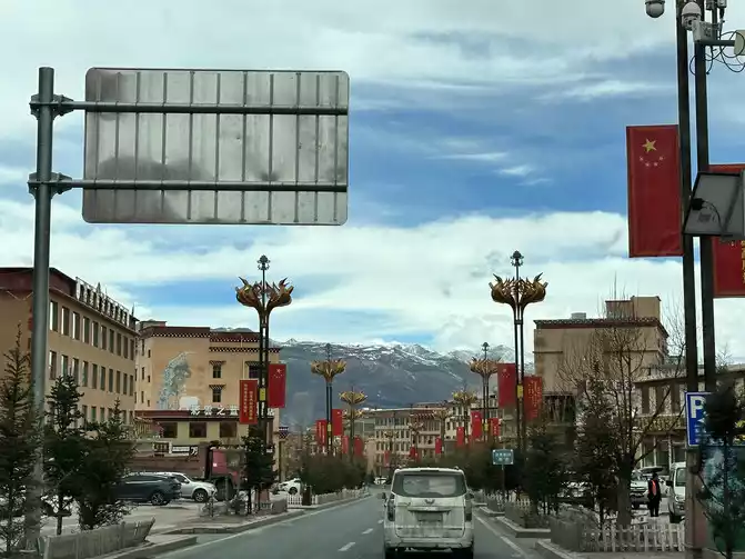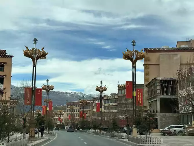 After passing the 227 National Highway, it is not far from the sky city of Litang, Litang is also the only way for the 318 National Highway Sichuan-Tibet Line, indeed to Litang, obviously there are more large trucks, finally at twelve o'clock we entered Litang County, the entire county is 4014 meters above sea level, this is the city in the sky, this is the hometown of Ding Zhen, and it is the second hometown of Cangyang Gyatso.