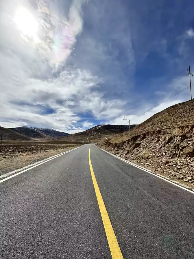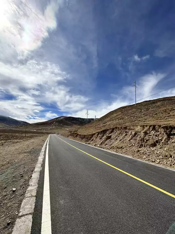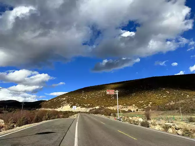 Ding Zhen I came, set off to Litang Letong Ancient Town, Qianhu Tibetan Village Scenic Area, all the way over the mountains, eleven o'clock to Litang County National Highway 227, the view is very wide, stop the car and take photos, very beautiful, the sky is very blue, the clouds are very white.