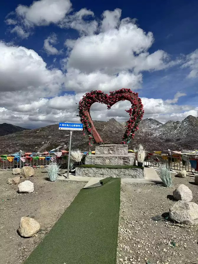 After eating, we continued on the road and arrived at Kazila Mountain at about two o'clock, a large observation deck, the observation deck is a flat grassy area, so we ran at an altitude of 4700 hahahaha