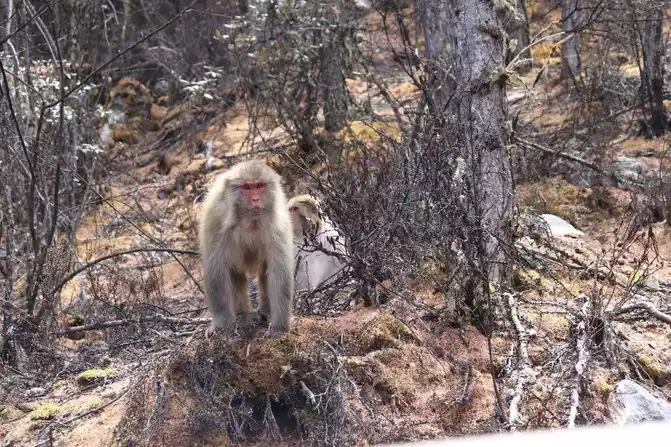 Then on the way up the mountain, we were attacked by Brother Monkey, scared the baby to death, carrying Xue Ji's bag of fried goods with oxygen cylinders, and was mistaken for food by Brother Monkey, he really came over to grab it, it was terrible, the bag was broken, the majority of netizens, must not carry the bag, it will really be robbed by Brother Monkey.