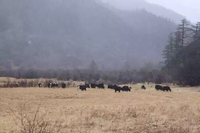 After filming for more than half an hour, I was really reluctant to leave. But I also had to go back, I was about to go down the mountain, and I walked back to Chonggu Temple in almost half an hour, and then went to Chonggu Meadow to see the cows, and then went back.
